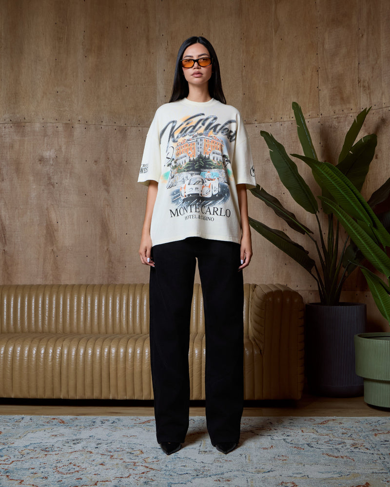 Vintage whiteShort Sleeve T-Shirt with a slightly oversized fit, crafted from heavy weight cotton. The Monaco Speedway T-Shirt features a ribbed crewneck collar, and our Monaco Speedway graphic to the front and sleeves. Vintage White Graphic T-Shirt Round Neck Short Sleeves Oversized fit Composition: 100%... -