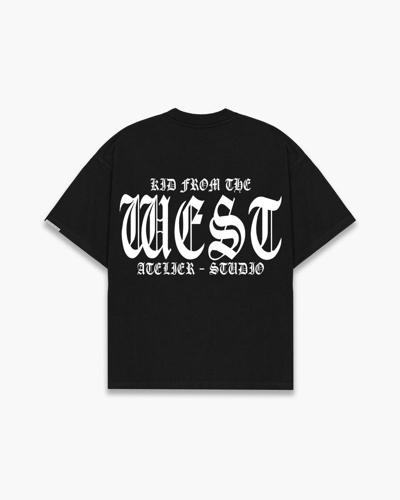 Vintage blackOur T-shirt is made of heavy-weight cotton jersey. A ribbed crew neck collar and the Out West graphic decorate the garment. Soft-shrunk, preshrunk and with our Kid From The West neck label. Artwork on the front The model is 5'10ft (177.8cm) and wears Size Medium... -