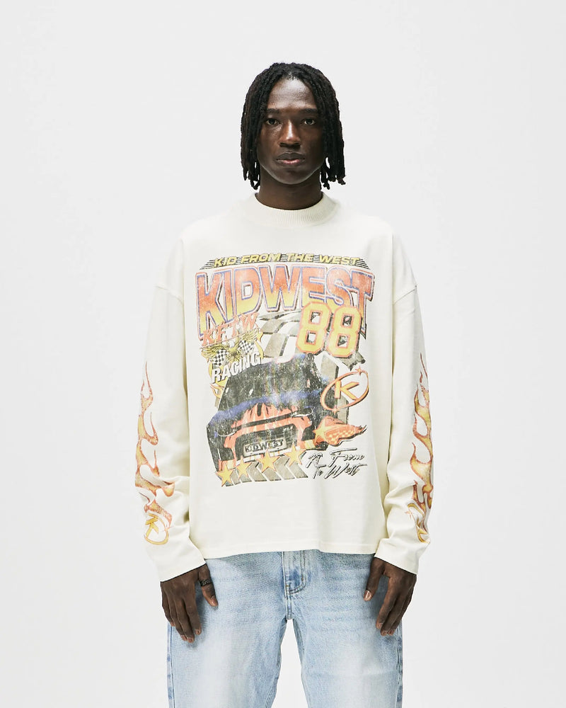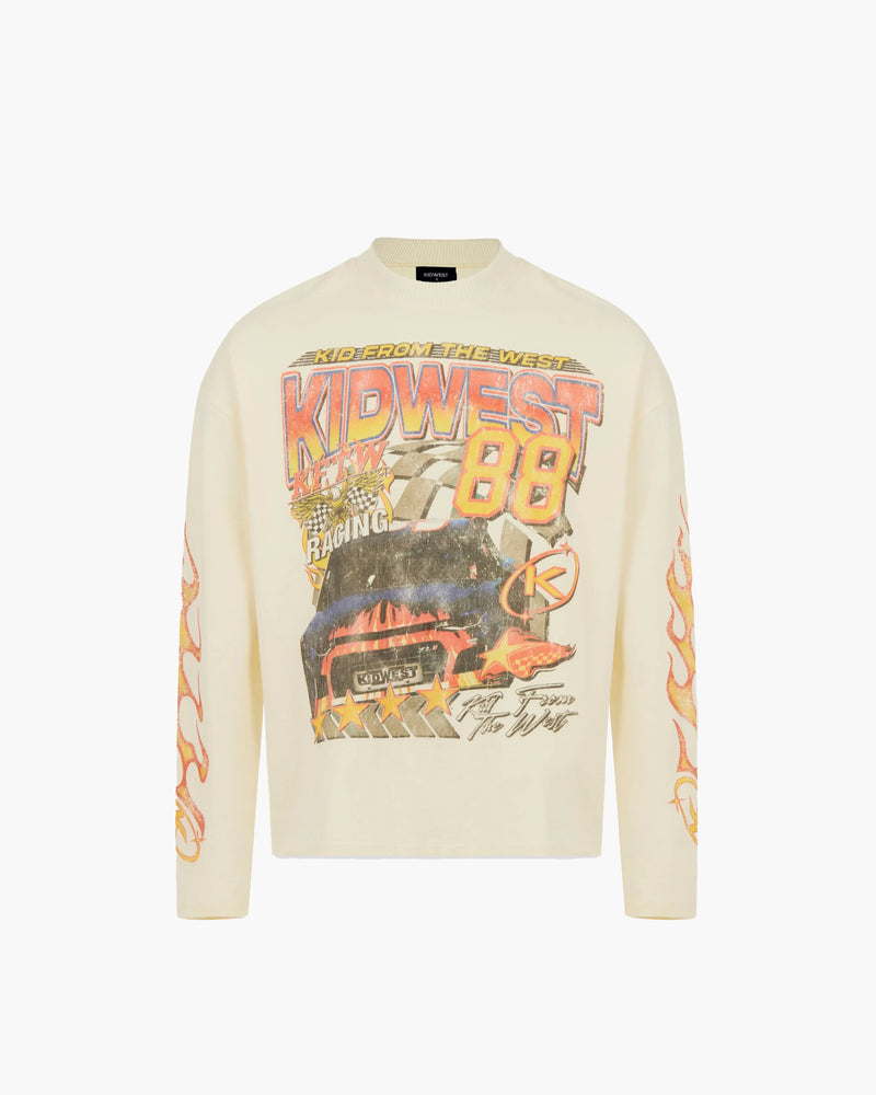 Vintage whiteLong Sleeve T-Shirt with a slightly oversized fit, crafted from heavy weight cotton. The Champions Racing T-Shirt features a ribbed crewneck collar, and our Champions Racing graphic to the front and sleeves. Vintage White Graphic T-Shirt Screen Printed Round Neck Long Sleeves Oversized fit... -