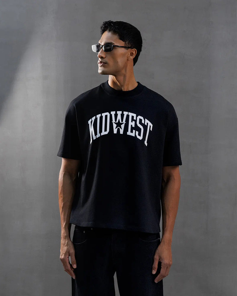 BlackShort Sleeve T-Shirt with a slightly oversized fit, crafted from heavy weight cotton. The College Star T-Shirt features a ribbed crewneck collar, and our College Star graphic to the front. Black Graphic T-Shirt Screen Printed Round Neck Short Sleeves Oversized fit Composition: 100% Cotton... -