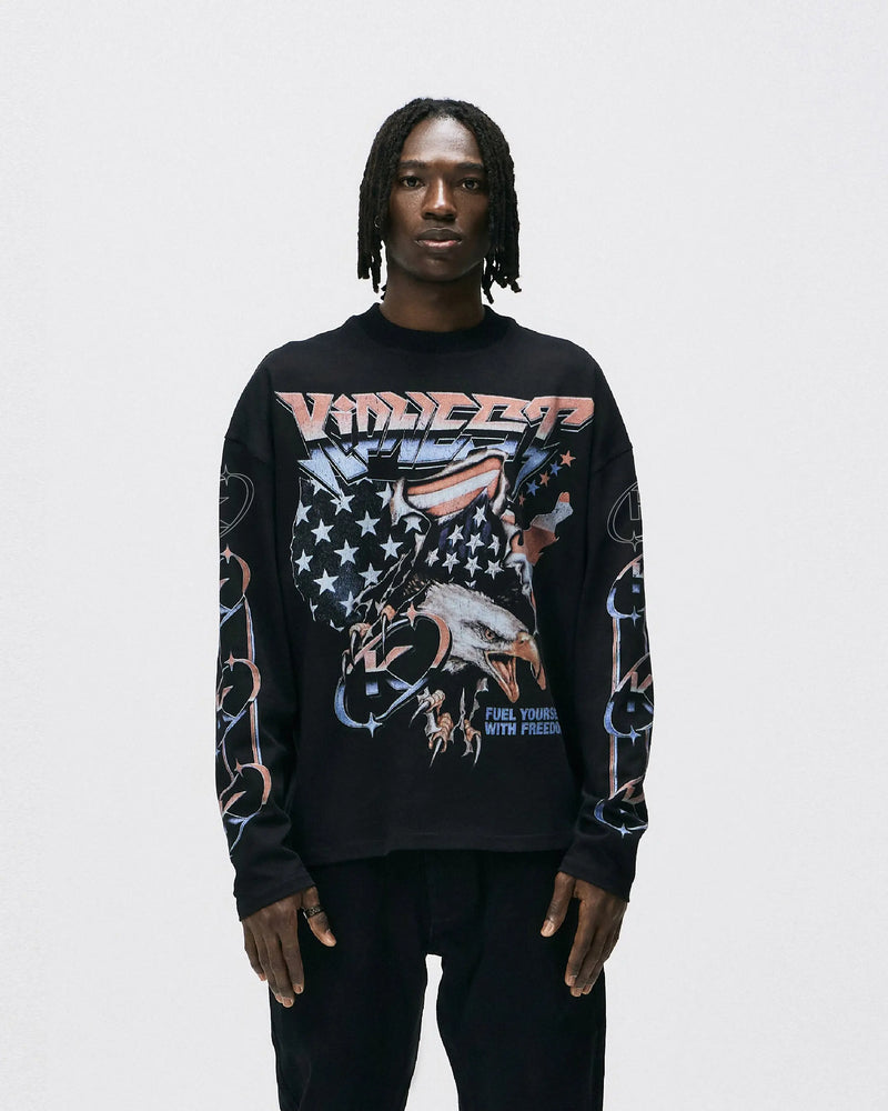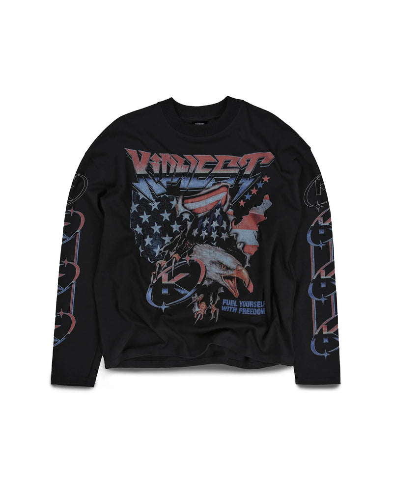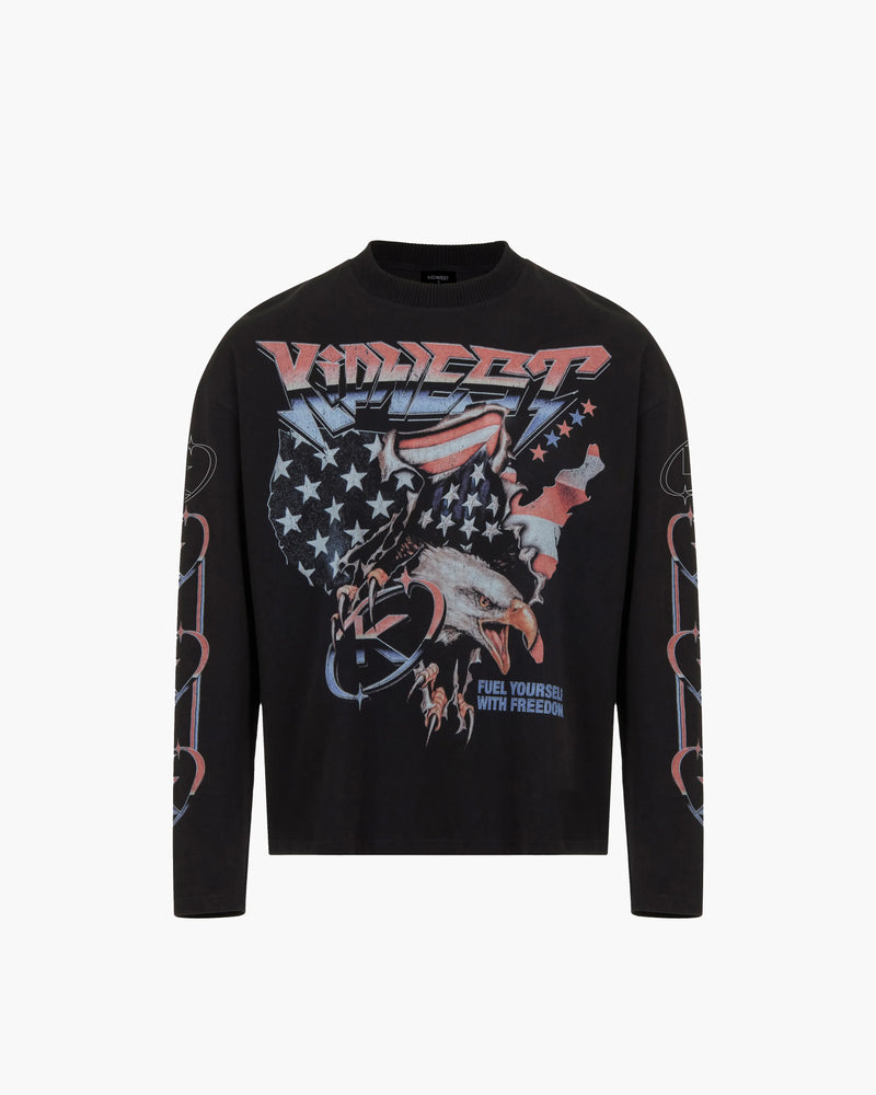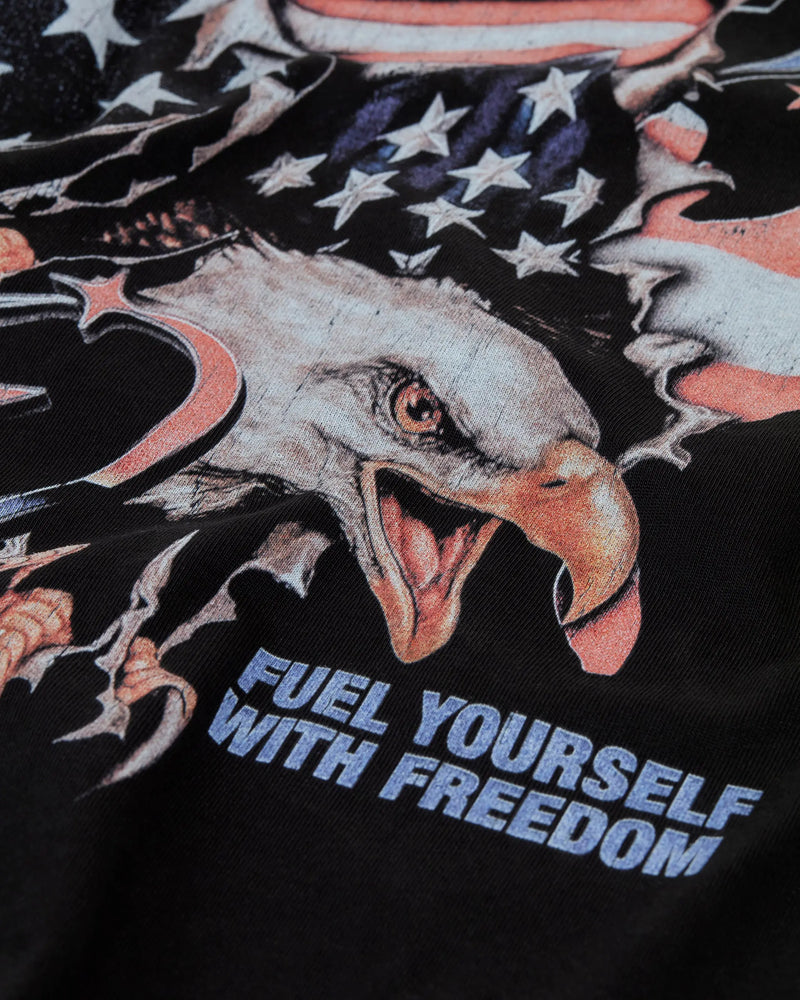 BlackLong Sleeve T-Shirt with a slightly oversized fit, crafted from heavy weight cotton. The Fuel Yourself T-Shirt features a ribbed crewneck collar, and our Freedom graphic to the front. Black Graphic T-Shirt Screen Printed Round Neck Long Sleeves Oversized fit Composition: 100% Cotton 300gsm... -