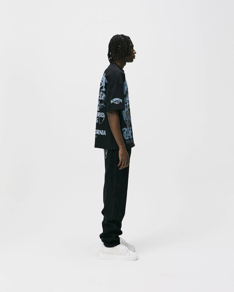 Vintage blackShort Sleeve T-Shirt with a slightly oversized fit, crafted from heavy weight cotton. The Hell Hunter Love T-Shirt features a ribbed crewneck collar, and our Hell Hunter graphic to the front and back. Vintage Black Graphic T-Shirt Round Neck Short Sleeves Oversized fit Composition:... -