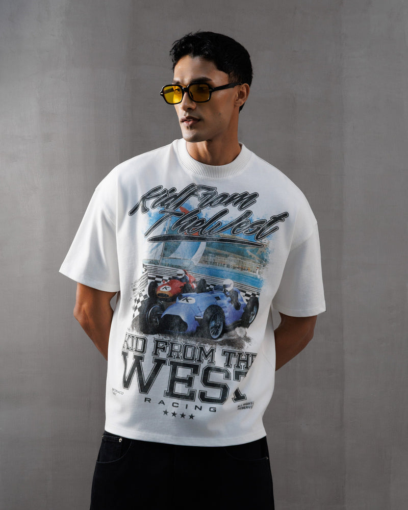 WhiteShort Sleeve T-Shirt with a slightly oversized fit, crafted from heavy weight cotton. The Monaco Speedway T-Shirt features a ribbed crewneck collar, and our Monaco Speedway graphic to the front and sleeves. White Graphic T-Shirt Screen Printed Round Neck Short Sleeves Oversized fit Composition:... -
